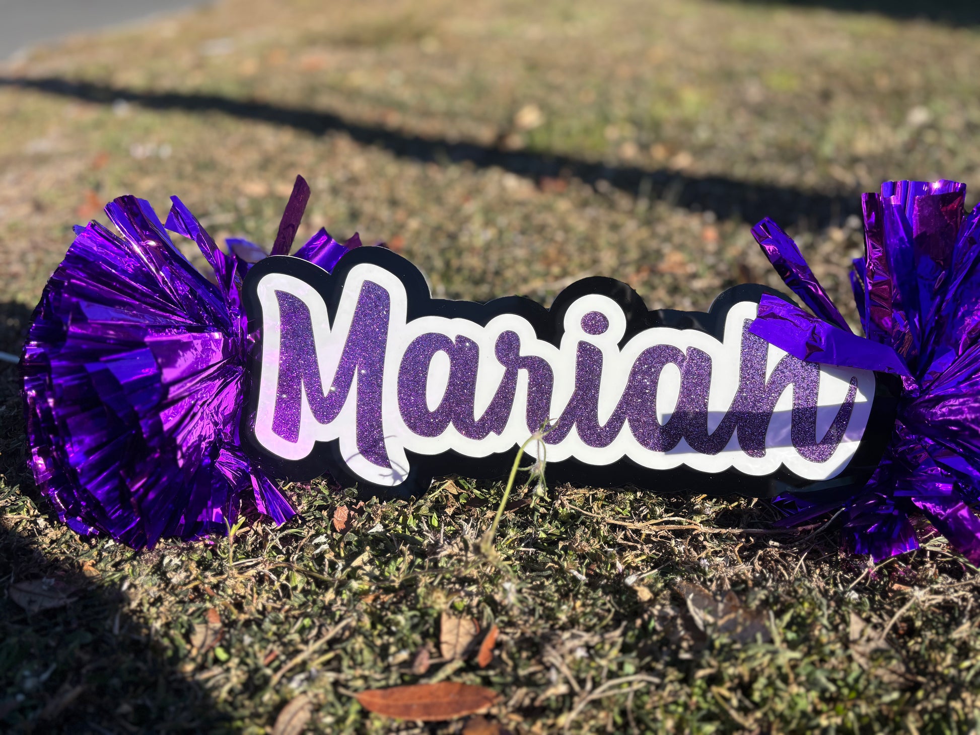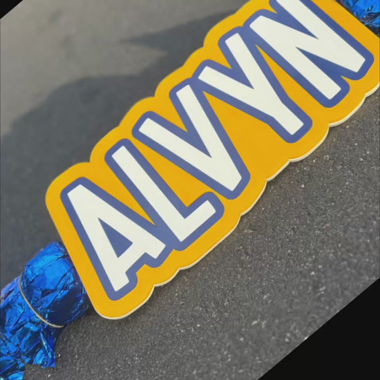 Each cheer stick measures approximately 12–14 inches, depending on the length of the name, and is crafted from durable ¼-inch acrylic. A sturdy handle is attached to the back, making it easy to wave proudly and cheer from the stands!